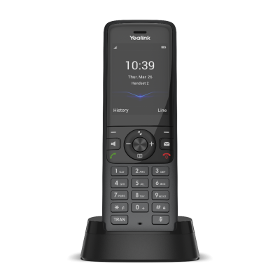 The Yealink 56H handset phones are cordless, up to 2 talk paths, caller ID, speaker phone and a belt clip. The phone comes with a charging cradle. Up to 5 cordless phones can be connected via a single base unit. Talk range is up to 160 feet from the base unit. Charging the phone overnight will hold a charge all day. Add Cordless Handset